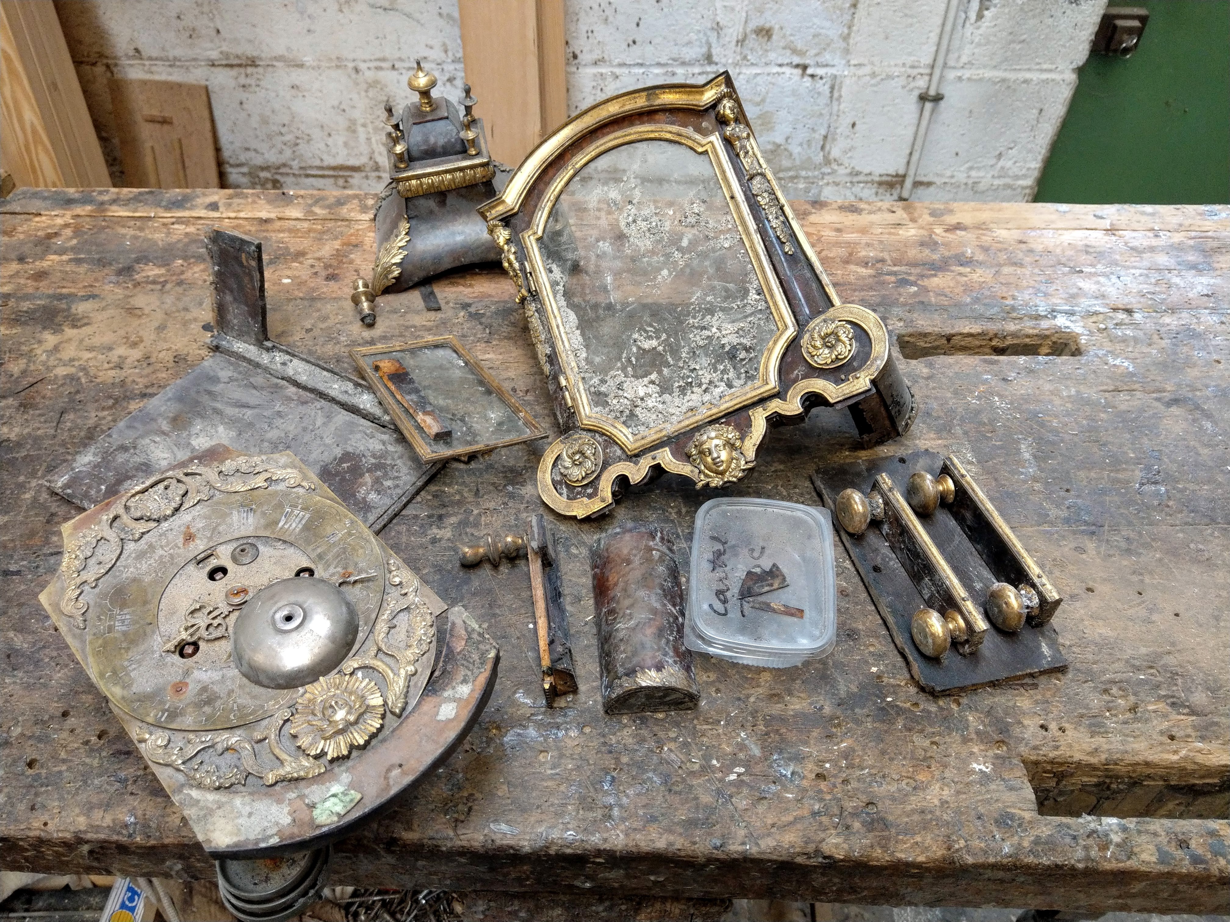 Horloge en Cartel d'époque Louis XIV en "marqueterie Boule" d'écaille de tortue et laiton